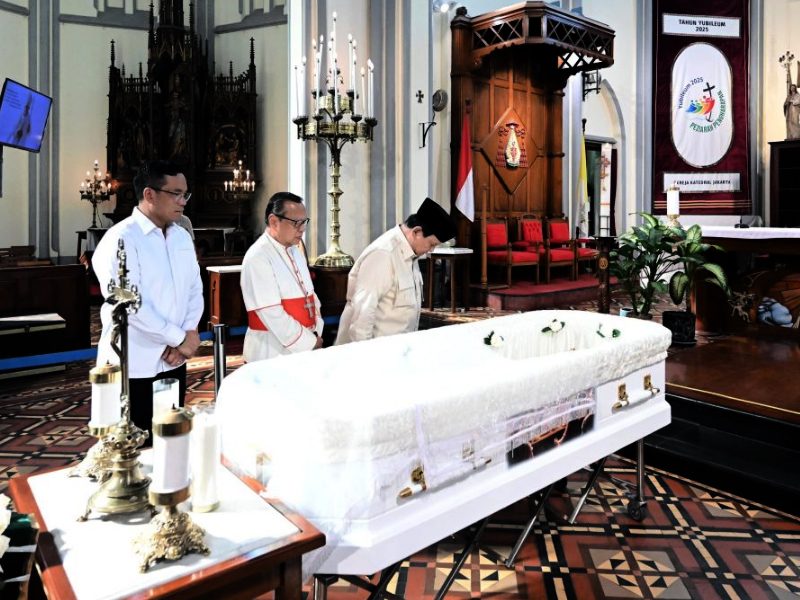 Jakarta, RiauChannel.Com – Presiden Prabowo Subianto melayat mendiang Uskup Emeritus Keuskupan Agung Kupang Monsinyur (Mgr) Petrus Turang di Katedral Jakarta, pada Jumat, 4 April 2025. Kepala Negara tiba di Katedral pada pukul 15.38 WIB.
